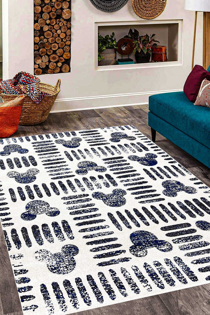 Doodle Tread White Rug -Turkish Rug 5.4 x 7ft