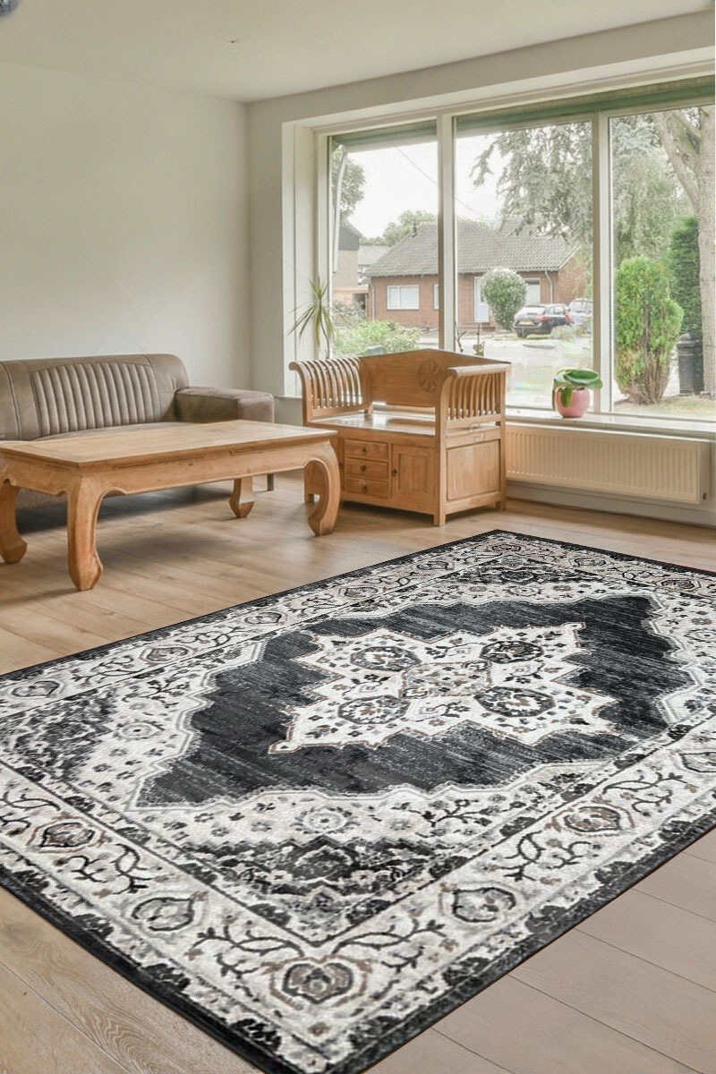 Midnight Vibes Gray Rug -Turkish Rug 5.2×7.5ft