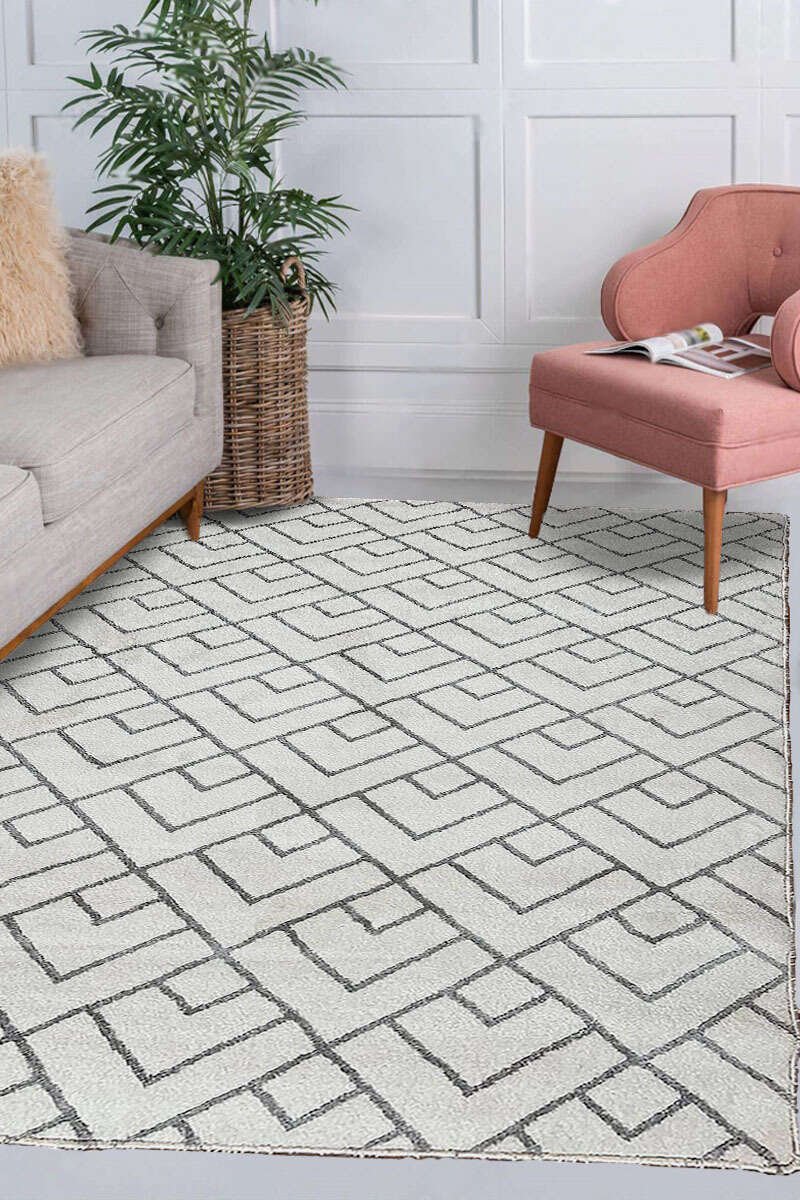 Nordic Knot White Rug -Turkish Rug 4.2x6ft